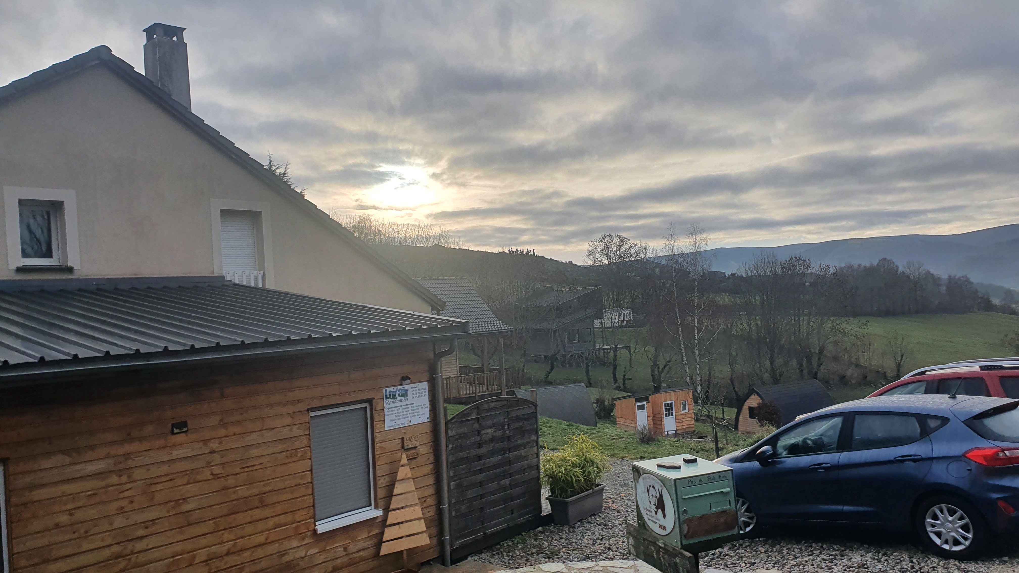 Nous avons passé une excellente nuit dans la mini pigne, très cozy et chauffée, avec une superbe vue sur le mont Lozère. Merci à Claude et Myriam pour leur accueil familial et chaleureux ainsi que pour le très bon repas. A bientôt nous espérons