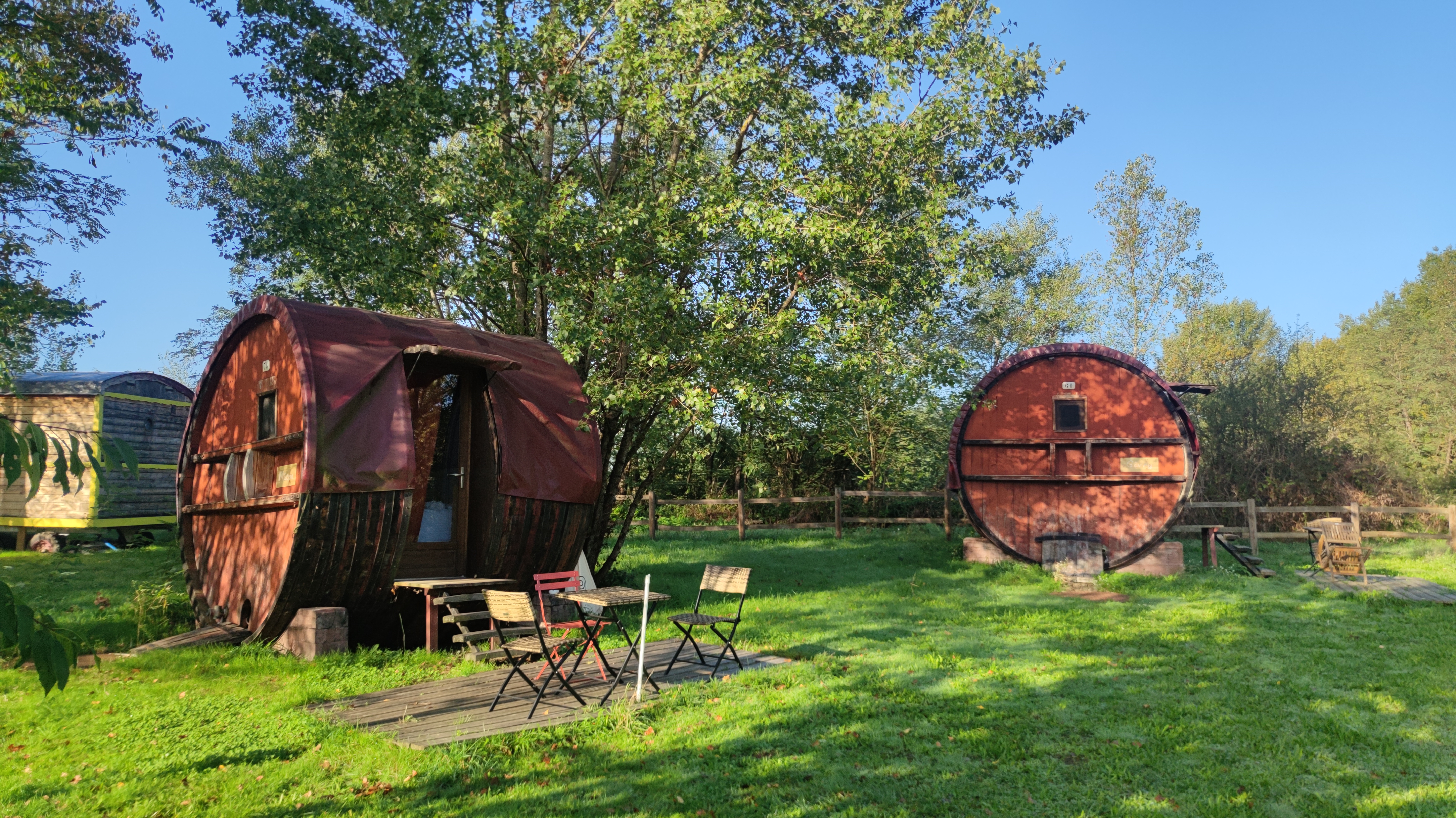 Bon camping. Une nuit dans un fût. Malheureusement un jour de canicule. Nous avons donc mal dormi. Mais tous y est pour passer un bon séjour. Tous les jeux sont à disposition